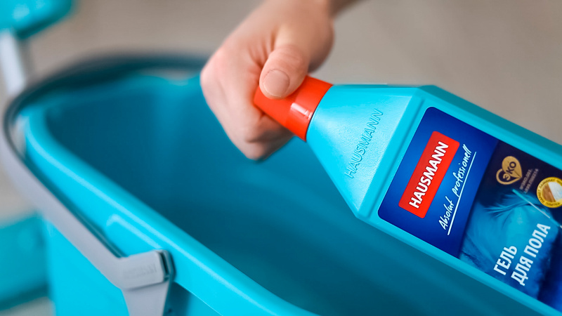 Линия бытовой химии и аксессуаров для уборки Hausmann помимо гелей для пола содержит большой ассортимент швабр, ведер, комплектов для уборки, салфеток для сухой, влажной и деликатной чистки. Все предметы, включая флаконы и канистры для геля, выполнены в единой цветовой гамме.
