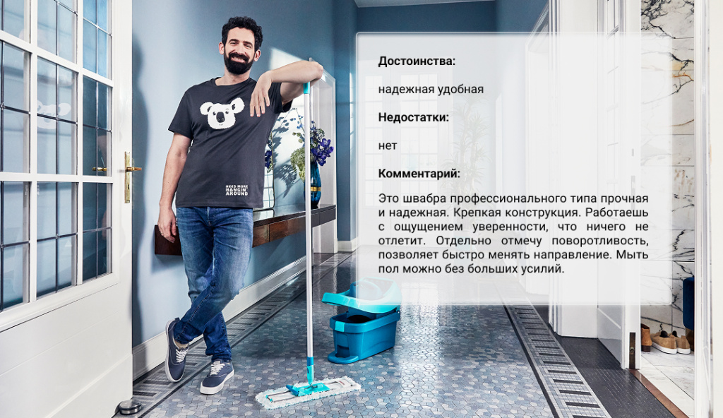 Обычные бытовые швабры быстро выходят из строя: насадки плохо устраняют загрязнения, а плохой отжим не дает удалить лишнюю влагу. В итоге на полу остаются разводы.