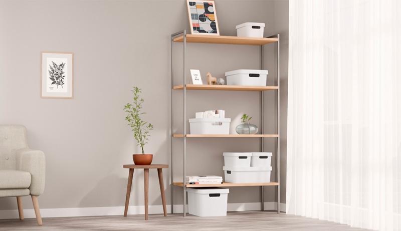 Контейнеры, коробки и корзины помогают структурировать пространство и держать вещи по категориям. Используйте наборы одинакового формата — это облегчает размещение на полках и делает их визуально аккуратнее.