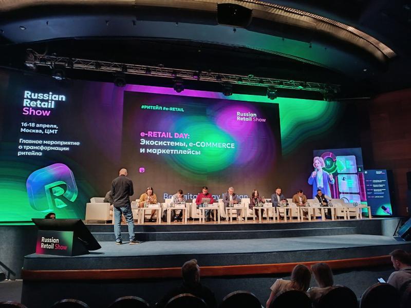 На сцене вели дискуссию и выступали представители крупнейших игроков на рынке электронной коммерции: OZON, Vprok.ru (Перекресток), Самокат, Сбермаркет и прочие.